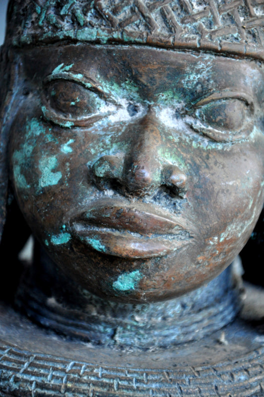 Oud bronzen beeld van een Oba uit Benin City, Nigeria