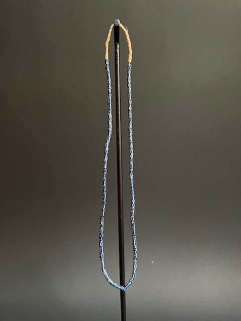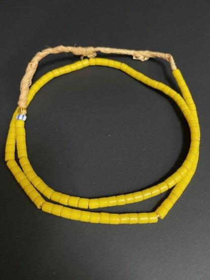 Vintage handelskralen ketting uit Ghana blauw-geel