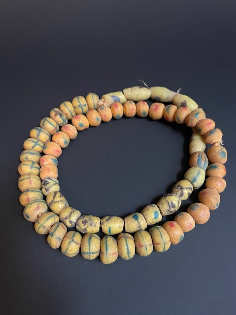 Vintage handelskralen ketting uit Ghana geel