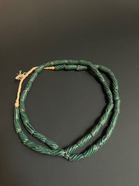 Lange vintage handelskralen ketting uit Ghana groen-zwart
