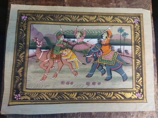 Jachttafereel op zijde uit India