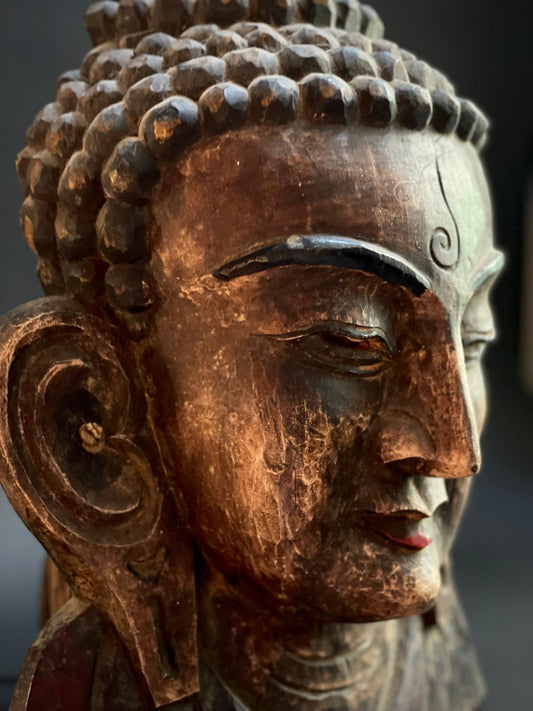 Groot houten boeddha masker uit Nepal