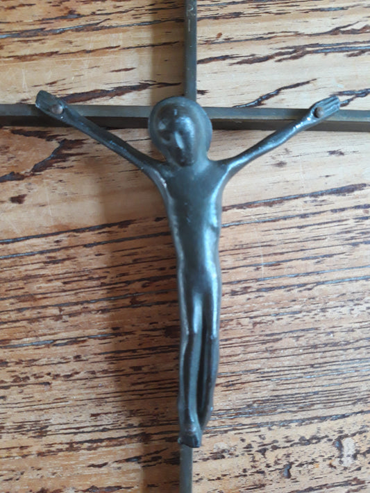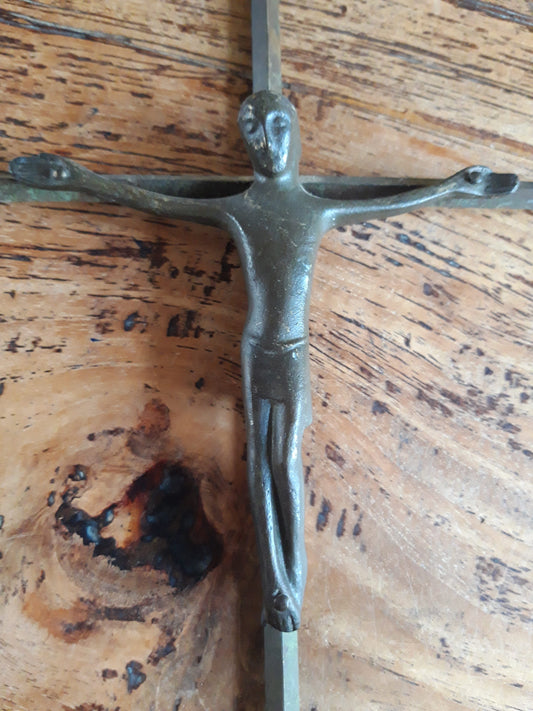 Oud koperen wandkruis uit Spanje