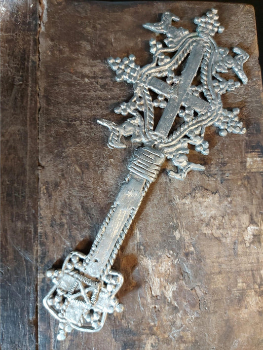 Koptische kruis hanger uit Ethiopië (verzilverd)