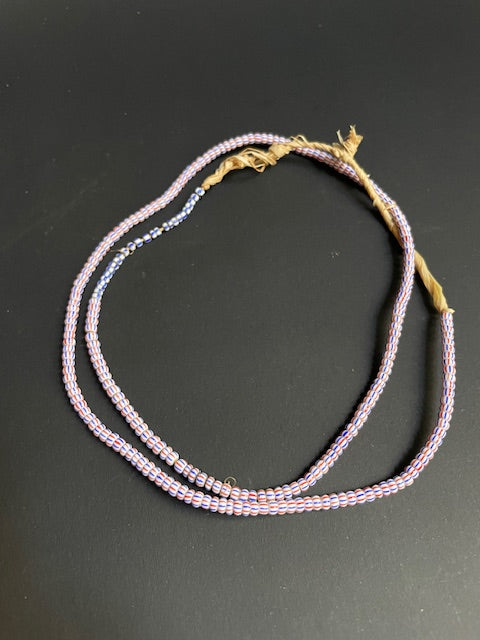 Vintage handelskralen ketting uit Ghana rood-wit-blauw gestreept