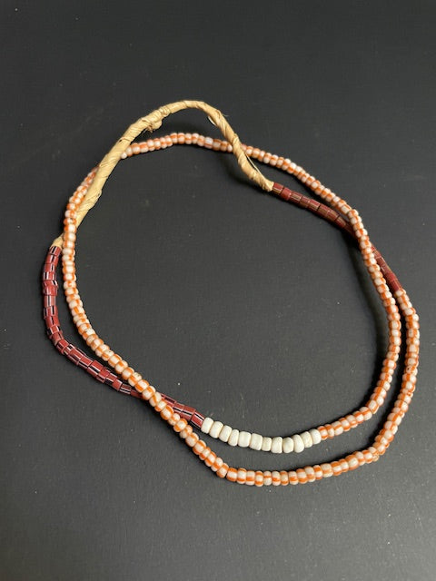Vintage handelskralen ketting uit Ghana oranje-wit