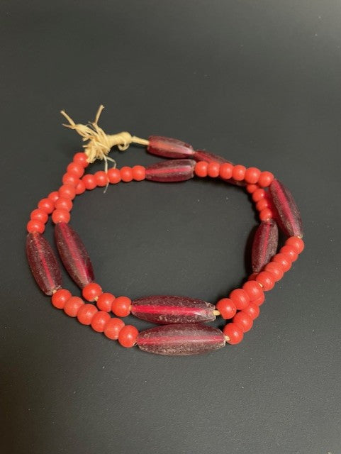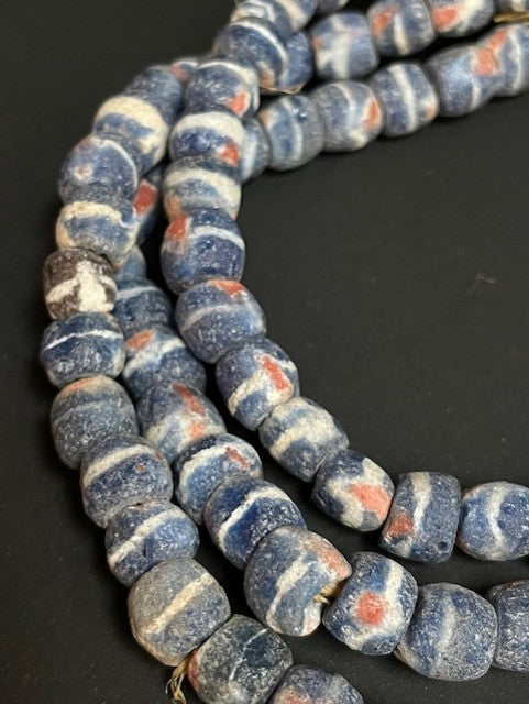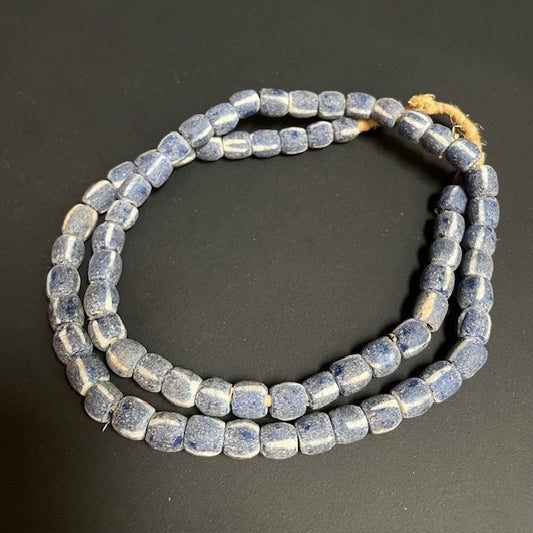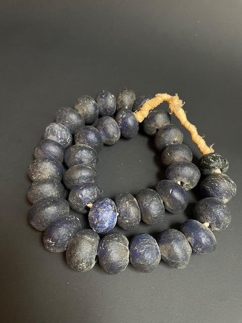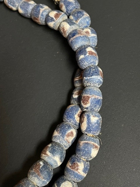 Vintage glaskralen ketting uit Ghana donkerblauw