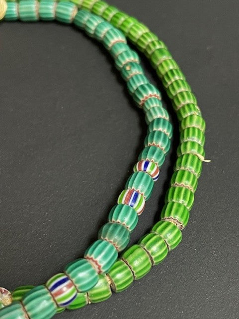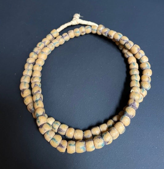 Vintage handelskralen ketting uit Ghana geelgroen gespikkeld