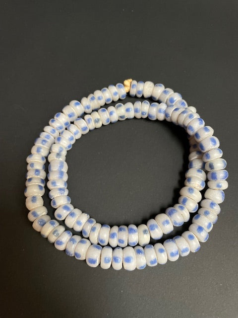 Vintage handelskralen ketting uit Ghana wit-blauw