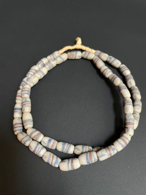 Vintage handelskralen ketting uit Ghana wit gestreept