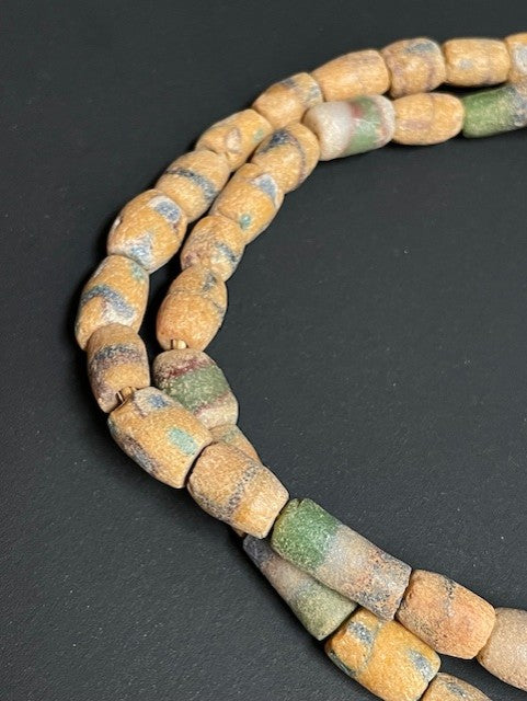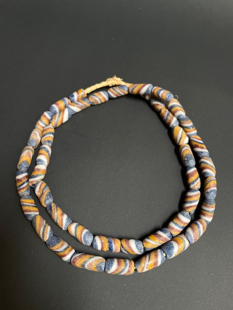 Lange vintage handelskralen ketting uit Ghana multicolor gestreept