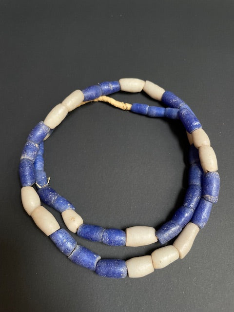 Vintage handelskralen ketting uit Ghana blauw-wit