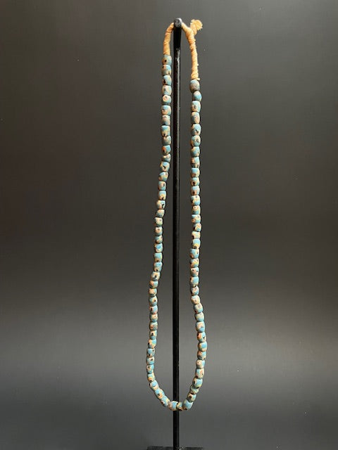 Lange vintage handelskralen ketting uit Ghana blauw stippen