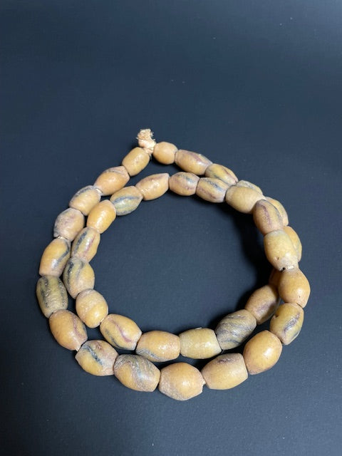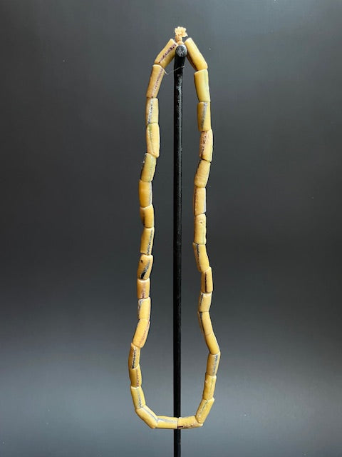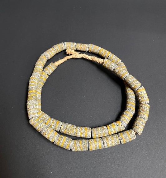 Vintage handelskralen ketting uit Ghana geel gestreept (tube)