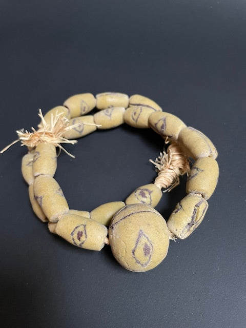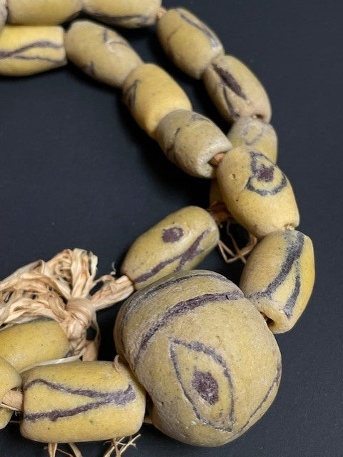 Vintage handelskralen ketting uit Ghana geel gespikkeld