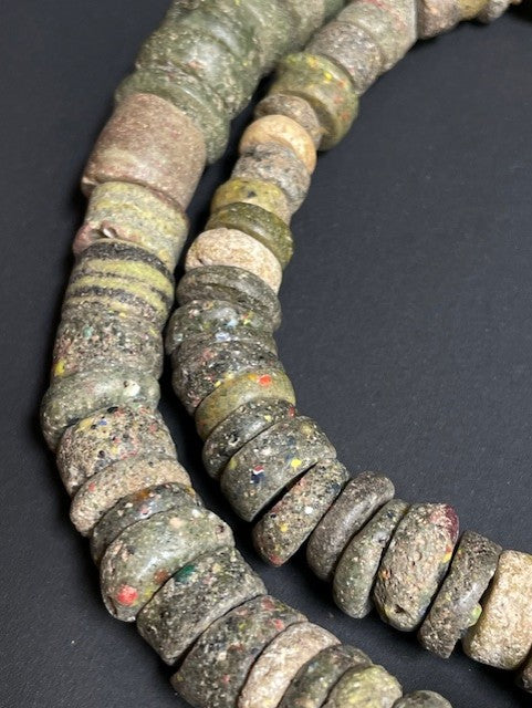 Lange vintage handelskralen ketting uit Ghana gerecyclede kralen