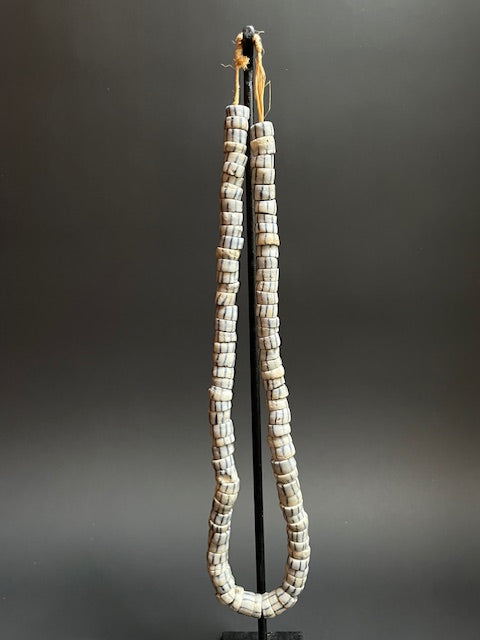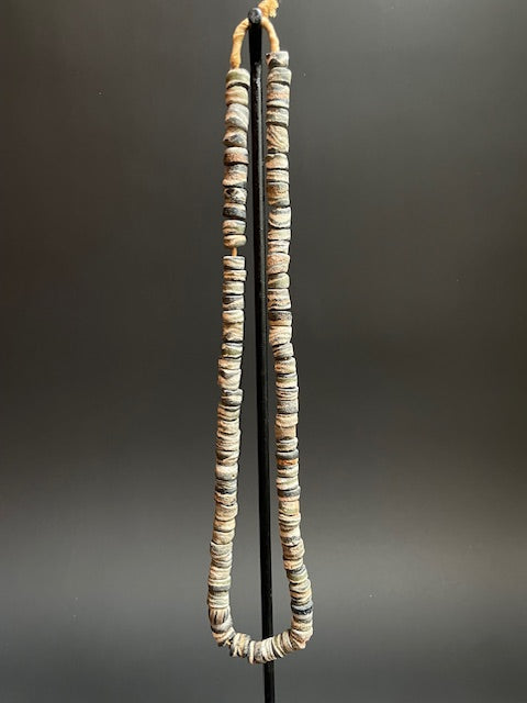 Vintage handelskralen ketting uit Ghana grijsblauw gestreept