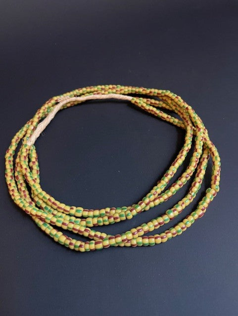 Lange vintage handelskralen ketting uit Ghana geel-groen-bruin