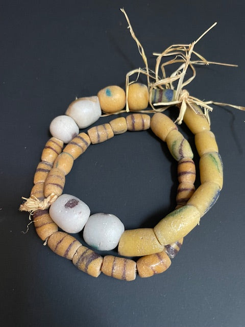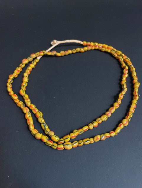 Vintage handelskralen ketting uit Ghana geel gestreept