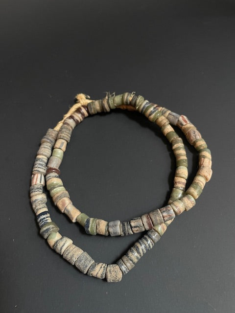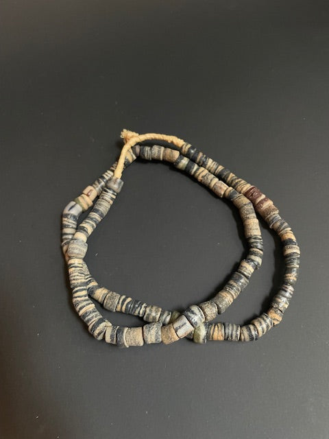 Vintage handelskralen ketting uit Ghana grijs gestreept