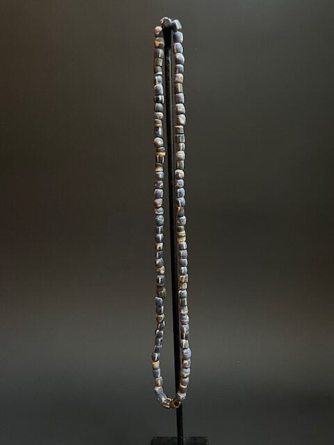 Vintage handelskralen ketting uit Ghana gestreept blauw