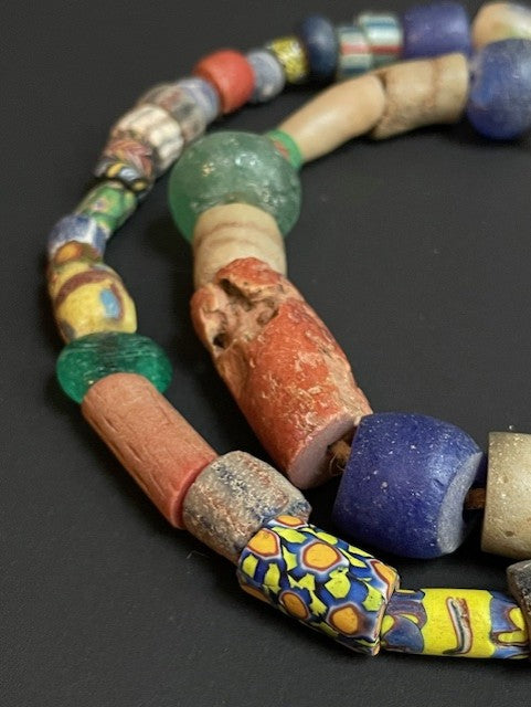 Vintage handelskralen ketting uit Ghana gekleurde mix gestreept