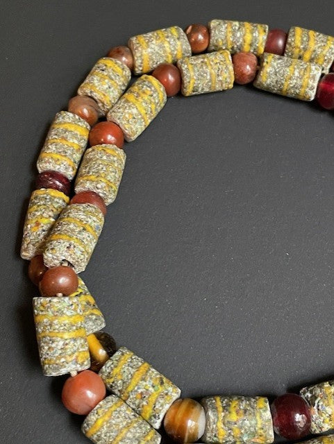 Lange vintage handelskralen ketting uit Ghana zwart-rood-geel