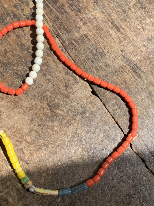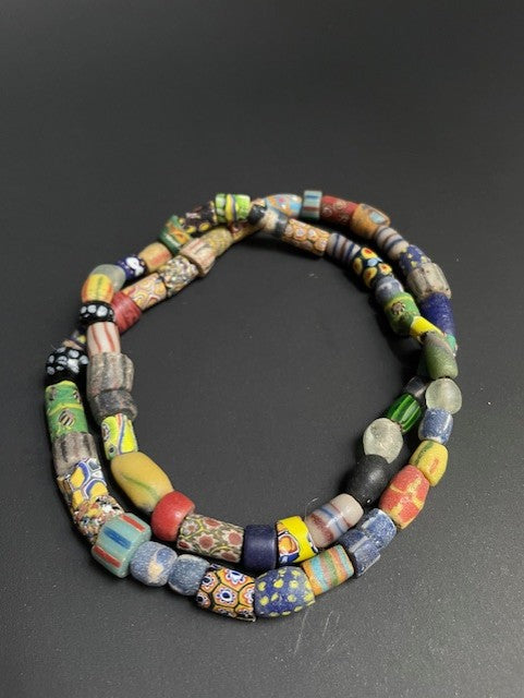 Lange vintage handelskralen ketting uit Ghana multicolor