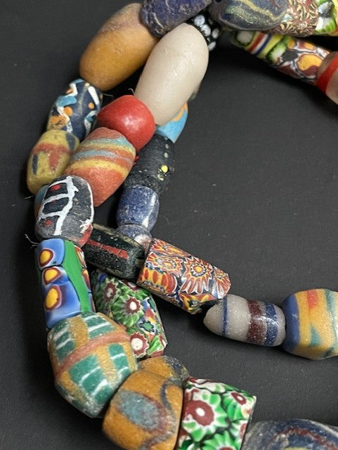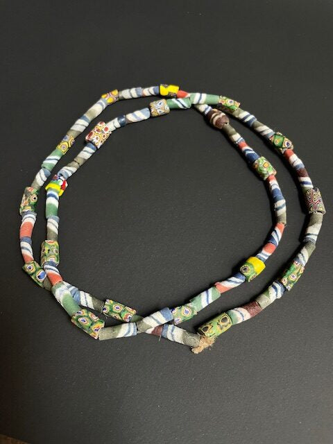 Lange vintage handelskralen ketting uit Ghana millefiori mix