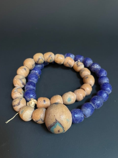 Vintage handelskralen ketting uit Ghana blauw-geel