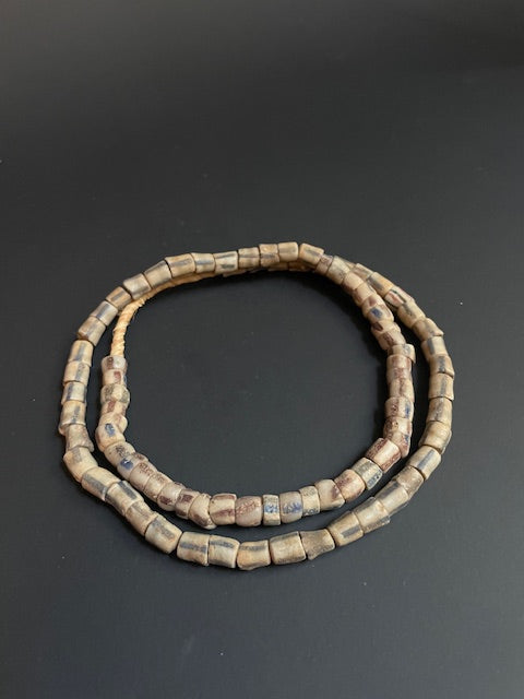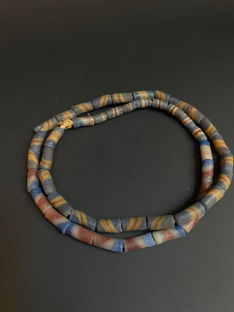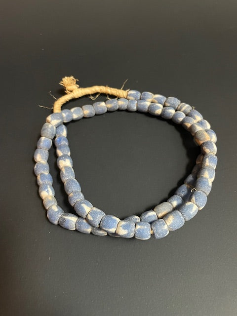 Vintage handelskralen ketting uit Ghana blauw gestreept