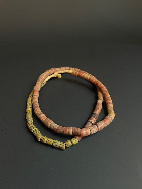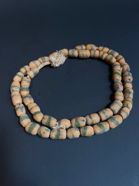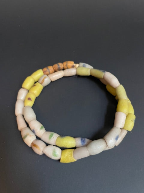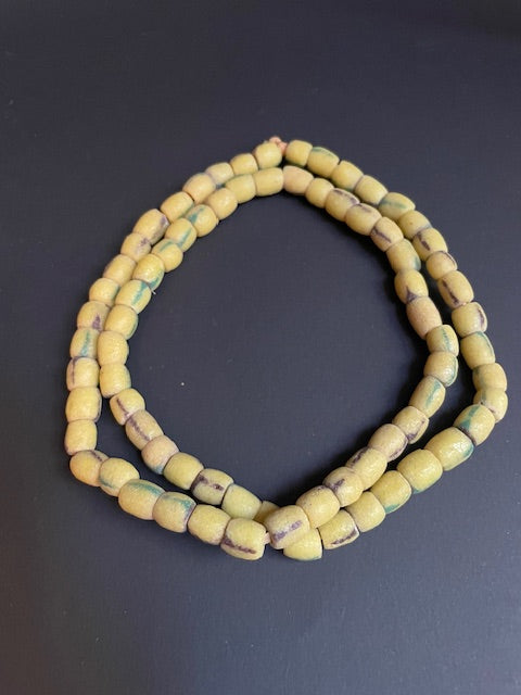 Vintage handelskralen ketting uit Ghana geel gestreept