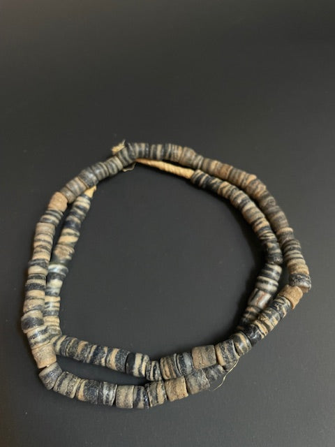 Vintage handelskralen ketting uit Ghana grijs-blauw