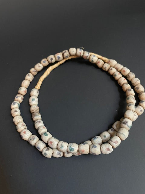 Vintage handelskralen ketting uit Ghana wit gestipt