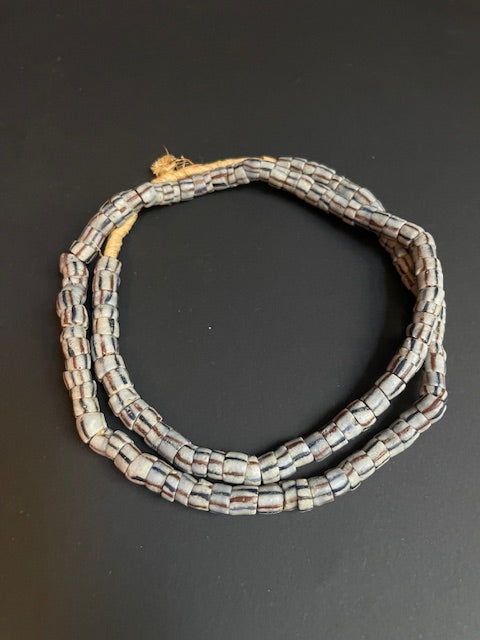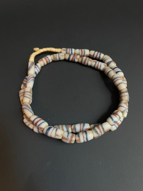 Vintage handelskralen ketting uit Ghana wit gestreept
