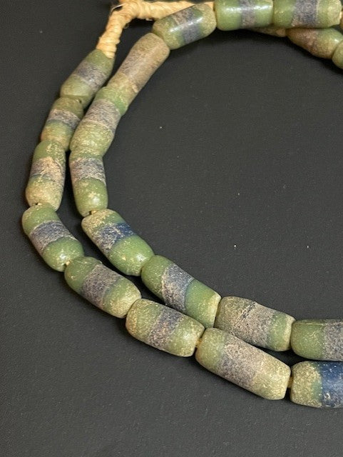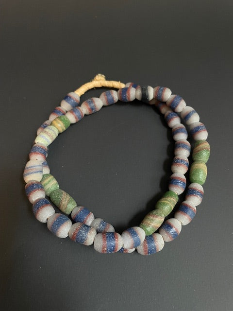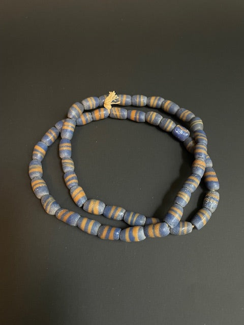 Vintage handelskralen ketting uit Ghana blauw gestreept
