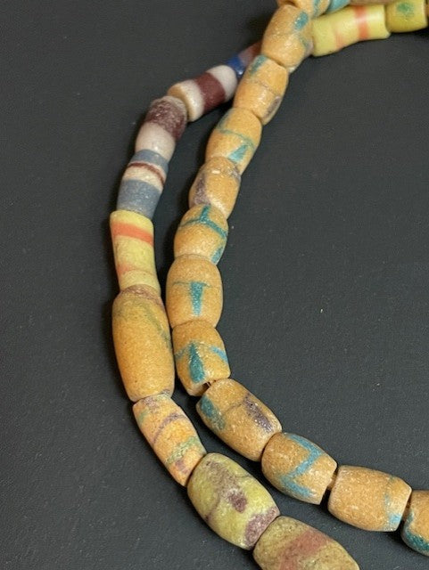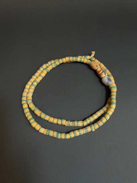 Vintage handelskralen ketting uit Ghana blauw-geel
