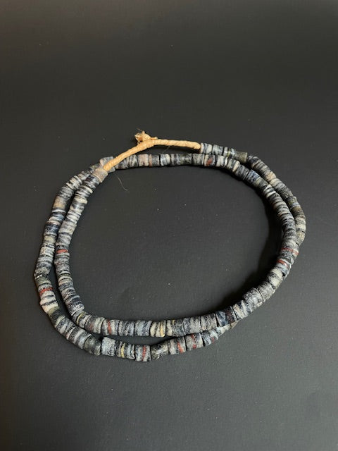 Vintage handelskralen ketting uit Ghana zwart gestreept